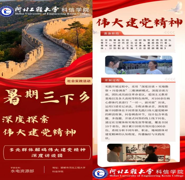 為引導(dǎo)大學(xué)生在實(shí)踐中傳承偉大建黨精神、厚植愛(ài)國(guó)主義情懷,河北工程大學(xué)科信學(xué)院“多元群體解碼偉大建黨精神深度訪談團(tuán)”以“探尋精神之源,傾聽(tīng)時(shí)代回聲”為主題,開(kāi)展暑期“三下鄉(xiāng)”實(shí)地訪談社會(huì)實(shí)踐活動(dòng)。團(tuán)隊(duì)針對(duì)紅色場(chǎng)館游客、工作人員、青年大學(xué)生、老黨員、中小學(xué)生等多類群體定制專屬《訪談提綱模板》。實(shí)踐團(tuán)以訪談?dòng)涗浥c多元傳播為手段,解碼偉大建黨精神,分別從以下方面具體開(kāi)展:一、實(shí)地紀(jì)實(shí)訪談;二、紅色教育基地講解;三、編撰研究報(bào)告與實(shí)錄冊(cè),開(kāi)設(shè)微信公眾號(hào)專欄推送解讀長(zhǎng)圖;打造《偉大建黨精神解碼手冊(cè)》,投放至相關(guān)場(chǎng)所作為實(shí)體載體;四、偉大建黨精神社會(huì)調(diào)研。在實(shí)踐中筑牢信仰之基、補(bǔ)足精神之鈣,爭(zhēng)做傳承紅色基因、矢志報(bào)國(guó)的新時(shí)代青年。