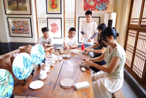抵達(dá)前鋒村后,實(shí)踐團(tuán)將非遺文化傳承作為重點(diǎn)工作,通過(guò)“理論+實(shí)踐”的方式深入挖掘當(dāng)?shù)匚幕Y源。團(tuán)隊(duì)邀請(qǐng)泥塑、“花帽子”等非遺技藝傳承人開(kāi)展專題教學(xué),傳承人結(jié)合前鋒村本土民俗故事,系統(tǒng)講解泥塑的歷史淵源,隊(duì)員們?cè)趥鞒腥说闹笇?dǎo)下分組參與泥塑創(chuàng)作,體驗(yàn)佩戴“花帽子”并拍攝記錄,在實(shí)踐中體會(huì)傳統(tǒng)技藝“慢工出細(xì)活”的匠心精神,深刻理解非遺作為鄉(xiāng)村文化“活化石”的價(jià)值,還圍繞“如何讓非遺貼合現(xiàn)代審美、吸引年輕群體”與傳承人交換想法,為非遺活態(tài)傳承提供青年視角。