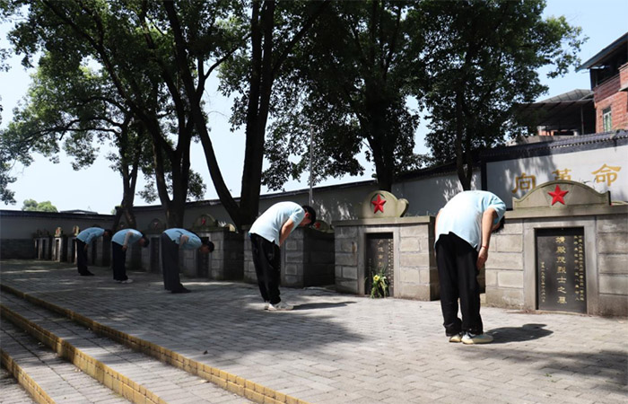 青山埋忠骨,精神永流傳 俞家坡烈士陵園始建于1952年,安葬著在解放戰(zhàn)爭(zhēng)和剿匪斗爭(zhēng)中犧牲的63名革命烈士。陵園依山而建,松柏蒼翠,莊嚴(yán)肅穆。榮代來同志向?qū)嵺`團(tuán)介紹,五間鎮(zhèn)曾是川東地區(qū)革命斗爭(zhēng)的重要戰(zhàn)場(chǎng),這座烈士陵園是為了紀(jì)念在當(dāng)?shù)馗锩窢?zhēng)、解放戰(zhàn)爭(zhēng)以及社會(huì)主義建設(shè)時(shí)期英勇犧牲的烈士們而修建的。這里長(zhǎng)眠著許多無名英雄,他們來自不同的家庭、不同的階層,但都懷著對(duì)國(guó)家和人民的無限忠誠(chéng),毅然投身到革命事業(yè)中,用自己的生命換來了今天的和平與安寧。