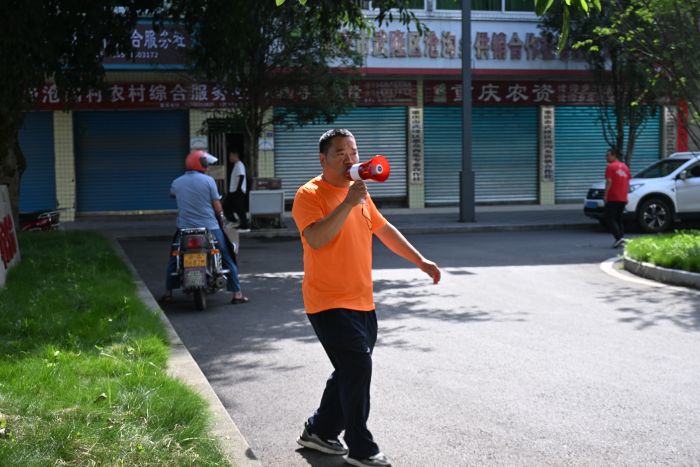圖為滄溝鄉(xiāng)人民政府工作人員進(jìn)行常態(tài)化宣傳 劉陽(yáng)攝