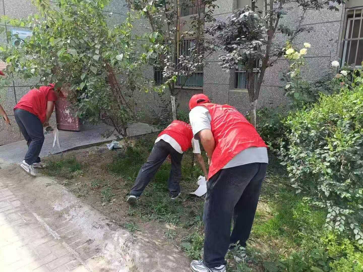 最后,團(tuán)隊(duì)成員幫助社區(qū)管轄的三五九小區(qū)開展了一場(chǎng)潔凈家園志愿服務(wù)活動(dòng),用雙手為社區(qū)“梳妝打扮”。活動(dòng)一開始,團(tuán)隊(duì)成員們便迅速分工、分片行動(dòng),仔細(xì)擦拭單元樓門口的宣傳欄,將蒙塵的通知海報(bào)擦得煥然一新;有的蹲在綠化帶旁,徒手撿拾藏在草叢里的塑料瓶、煙頭等垃圾,連細(xì)小的紙屑都不放過。