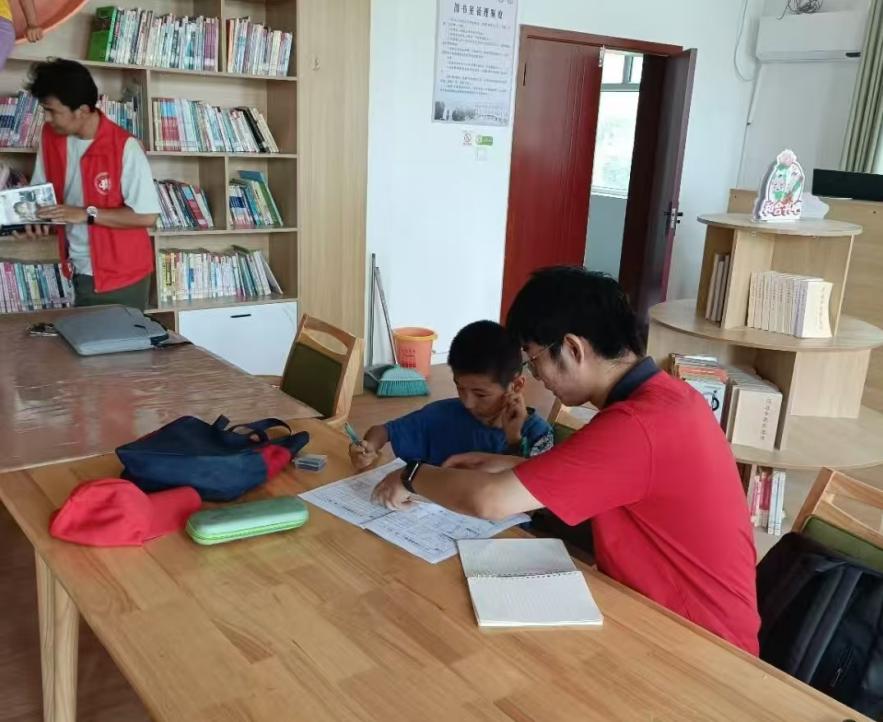 圖為團(tuán)隊(duì)成員輔導(dǎo)小朋友完成功課。賈絲絲供圖