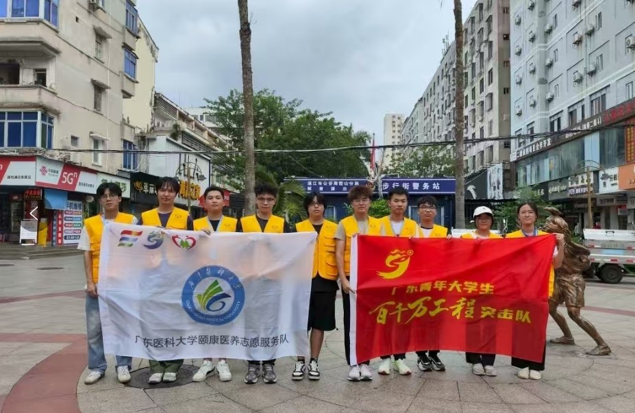 (圖為廣東醫(yī)科大學(xué)頤康醫(yī)養(yǎng)志愿服務(wù)隊(duì)隊(duì)員前往步行街開展健康宣傳。李如意 攝)