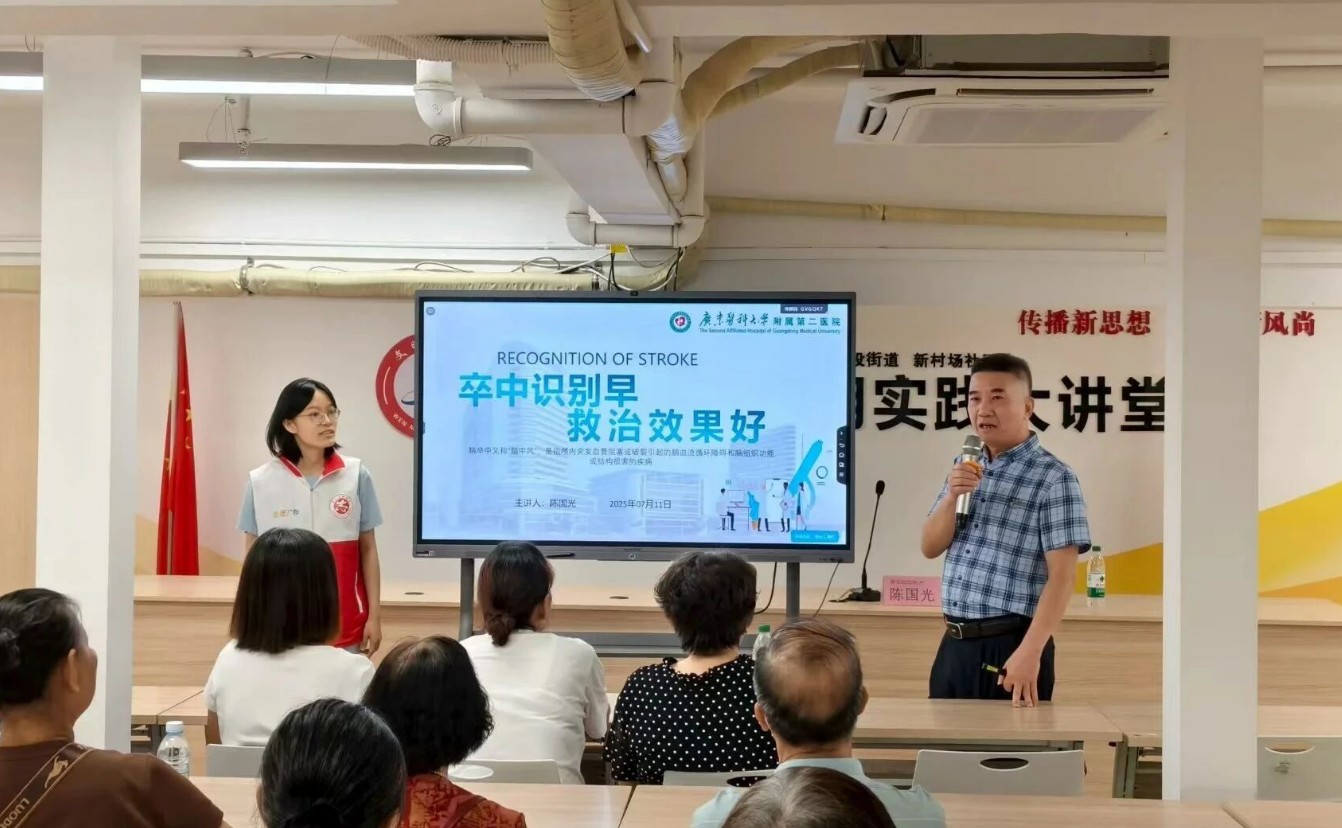 為深入貫徹落實《“健康中國2030”規(guī)劃綱要》關(guān)于加強慢性病防治和健康教育的決策部署,積極響應(yīng)國家衛(wèi)生健康委關(guān)于腦卒中防治專項行動的號召,9月2日,廣東醫(yī)科大學(xué)頤康醫(yī)養(yǎng)志愿服務(wù)隊攜手建設(shè)社區(qū)服務(wù)中心,走進(jìn)湛江市新村場社區(qū),開展“預(yù)防腦卒中,健康伴我行”主題科普宣講活動。本次活動旨在提升社區(qū)居民對腦卒中的科學(xué)認(rèn)知,增強早期識別和預(yù)防能力,助力健康社區(qū)建設(shè)。
