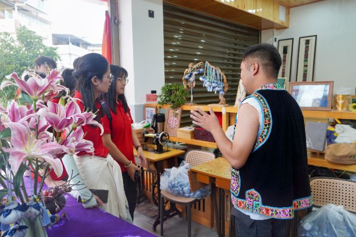 湖南師范大學“蒼洱尋跡承古韻,云嶺仿俗繪新篇”實踐團來到在大理漾濞蒼山腳下,探訪一家名為“一剪一繡”的非遺文化企業(yè)。它正以針線為紐帶,重新定義著家鄉(xiāng)與親情、傳統(tǒng)與創(chuàng)新之間的關(guān)系。00后青年張啟誠創(chuàng)辦的云南一剪一繡非物質(zhì)文化傳播有限公司,不僅致力于彝族刺繡的傳承與推廣,更讓超過200名彝族母親實現(xiàn)了“背著娃、繡著花,養(yǎng)活自己又養(yǎng)家”的愿景。