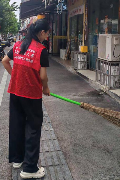 -環(huán)境整治時,學子與志愿者手持掃帚、簸箕,對主干道、背街小巷細致清理,俯身撿拾煙頭、紙屑,鏟除墻角堆積的落葉與雜物、清理衛(wèi)生死角和小廣告,還借“垃圾分類小游戲”促環(huán)保,讓社區(qū)環(huán)境煥然一新,居民出行更舒暢。