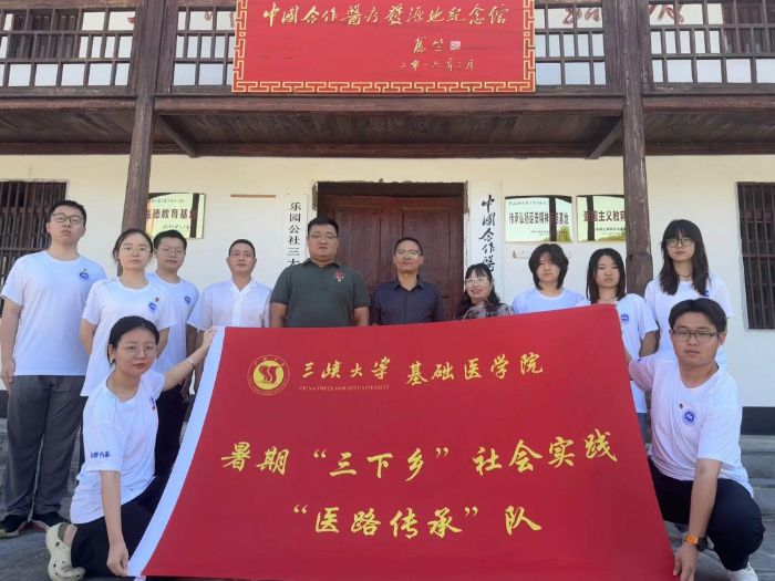(通訊員 張粵 王欣睿 譚海霞 辛子恒)8月28日,由三峽大學(xué)基礎(chǔ)醫(yī)學(xué)院、長(zhǎng)陽(yáng)土家族自治縣榔坪鎮(zhèn)樂(lè)園村村委共同舉辦的“傳承紅醫(yī)精神,踐行仁心使命”授旗儀式在長(zhǎng)陽(yáng)樂(lè)園村會(huì)議室開展。三峽大學(xué)基礎(chǔ)醫(yī)學(xué)院黨委副書記江雄、樂(lè)園村村委姜從華、樂(lè)園村村醫(yī)代表李發(fā)從及醫(yī)路傳承實(shí)踐隊(duì)全體隊(duì)員參加此次儀式。