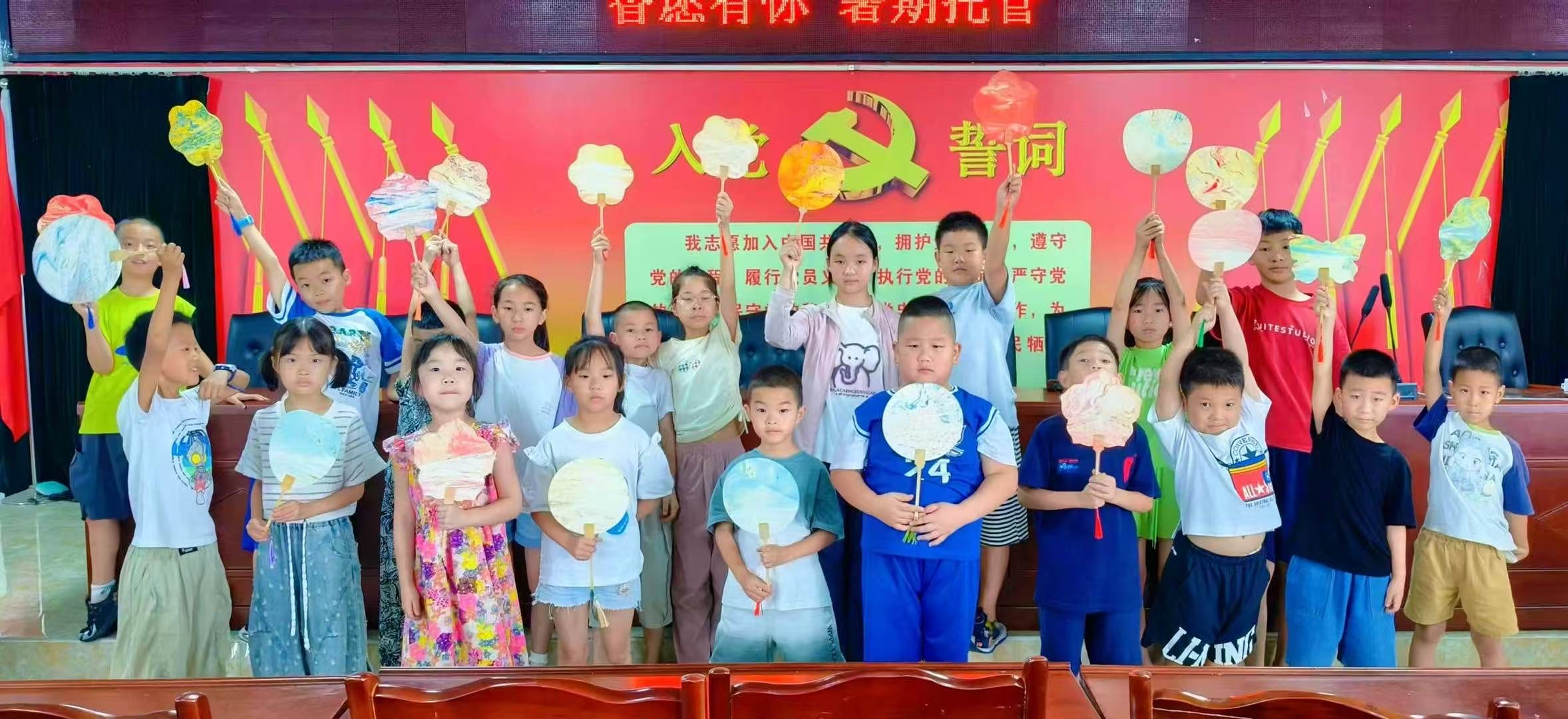 附圖 1:孩子們拿著自己制作好的非遺漆扇進(jìn)行拍照,興奮的神情展現(xiàn)出對(duì)傳統(tǒng)文化的濃厚興趣。付駿宇供圖