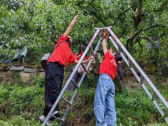 茂縣的青山綠水間,藏著特色農(nóng)業(yè)的發(fā)展密碼。8月14日,實踐隊深入青脆李基地、花椒地和瑞雪蘋果種植區(qū),與農(nóng)戶、種植戶面對面交流。在青脆李基地,現(xiàn)代化種植技術(shù)讓果實品質(zhì)穩(wěn)步提升,但收購商卻面臨著運輸成本高、銷售渠道窄的難題。“可以借助直播電商東風,讓青年返鄉(xiāng)人才牽頭,把果園變成‘直播間’。”隊員們結(jié)合專業(yè)知識,提出“農(nóng)旅融合+電商推廣”的建議,希望通過打造采摘體驗游、拓展線上銷售渠道等方式,破解銷售困境。并結(jié)合當?shù)靥厣珵榍啻嗬盍可碓O計了一款包裝盒。這份充滿巧思的設計得到了團委書記的認可,認為其兼具美觀與實用性,目前已交由茂縣文旅局,助力該地區(qū)青脆李的推廣宣傳,讓這份來自田間的清甜被更多人知曉。