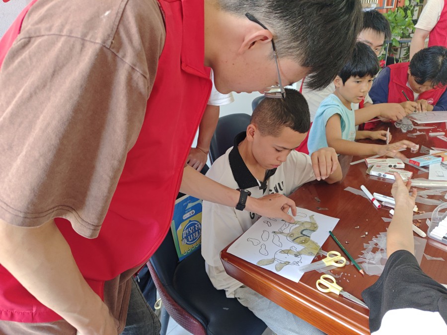 "皮影不僅是娛樂,更是承載文化的活化石。"志愿服務(wù)團(tuán)負(fù)責(zé)人介紹,團(tuán)隊特別邀請當(dāng)?shù)仄び皞鞒腥虽浿平虒W(xué)視頻,在活動中穿插講解皮影戲的唱腔、劇目和歷史。孩子們在動手實踐中,逐漸理解"一口敘說千古事,雙手對舞百萬兵"的藝術(shù)魅力,感受到傳統(tǒng)技藝背后的文化底蘊(yùn)。活動尾聲,孩子們捧著親手制作的皮影合影留念,社區(qū)工作者們紛紛點贊:“這種寓教于樂的方式,讓孩子真正走進(jìn)非遺,比單純的說教更有感染力。”此次活動不僅培養(yǎng)了孩子們的動手能力和創(chuàng)造力,更通過沉浸式體驗,在幼小的心靈中播撒下文化傳承的種子。