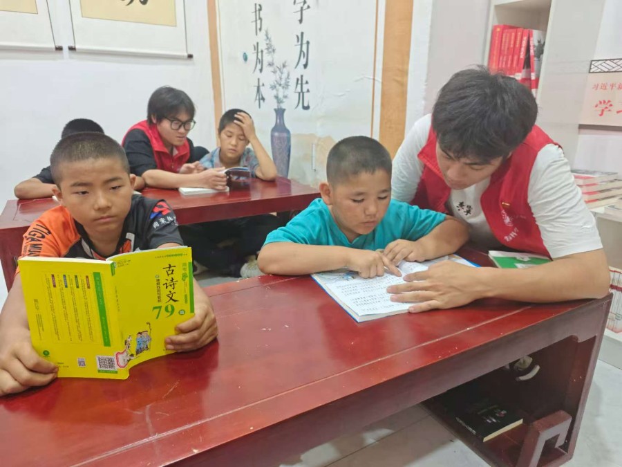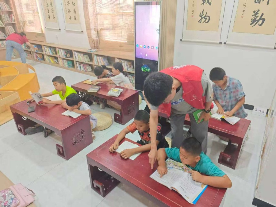 7月17日的阿瓦提縣花園社區(qū),暑氣被陣陣書香與童聲驅(qū)散。塔里木大學“心若向陽 次第花開”伴童心同行志愿服務團在此搭建起一方小天地,一場詩歌朗誦會與讀書會交織上演,讓孩子們在文字的世界里遇見美好,在聲音的傳遞中綻放光芒。午后的活動場地,被書籍與詩歌卡片裝點得格外溫馨。志愿者們將提前收集的兒童書籍整齊碼放,從繪本到童話,從科普讀物到名人故事,多樣的選擇讓孩子們一進場便被吸引。讀書會環(huán)節(jié),沒有刻意的引導,志愿者們只是安靜地坐在孩子們身邊,陪著他們翻看書頁。有的孩子捧著《昆蟲記》,指尖劃過插圖,眼神跟著文字探尋自然的奧秘;有的沉浸在《安徒生童話》里,時而皺眉時而微笑,跟著角色經(jīng)歷悲歡;還有的聚在科普類書籍前,小聲討論著宇宙與星球的神奇。