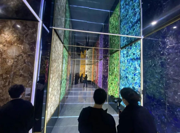 探訪英良石材是實(shí)踐期間的重要環(huán)節(jié)。在李詩(shī)蕓老師的引領(lǐng)下,15名團(tuán)隊(duì)成員先后參觀了英良石材自然歷史博物館與五號(hào)館。英良集團(tuán)工作人員熱情接待并詳細(xì)講解,為學(xué)生們提供了難得的學(xué)習(xí)契機(jī)。從古老的化石紋理到現(xiàn)代各類石材品種,學(xué)生們近距離觀察石材的天然質(zhì)感與獨(dú)特美學(xué),由此激發(fā)出創(chuàng)新設(shè)計(jì)靈感——探索石材與其他材料的融合方式,打造兼具生活空間氛圍、辦公功能美學(xué)與會(huì)議室專屬質(zhì)感的設(shè)計(jì)方案,滿足多元空間需求。