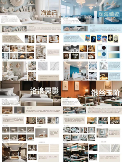基于這一靈感,團(tuán)隊(duì)多次開(kāi)展研討并打磨創(chuàng)意理念,圍繞居住、辦公等多元場(chǎng)景探索石材的創(chuàng)新應(yīng)用。在居住空間設(shè)計(jì)中,他們深挖石材特性,使其在客廳裝飾、臥室氛圍營(yíng)造、餐廳美學(xué)提升中的發(fā)揮出更大潛力,讓石材從單純的建筑材料轉(zhuǎn)變?yōu)閭鬟f生活溫度與藝術(shù)氛圍的關(guān)鍵元素;在辦公場(chǎng)景設(shè)計(jì)時(shí),充分考慮會(huì)議室的莊重需求與開(kāi)放式辦公區(qū)的功能美學(xué)平衡,將石材特性與辦公需求結(jié)合,設(shè)計(jì)出適配職場(chǎng)的創(chuàng)意應(yīng)用。