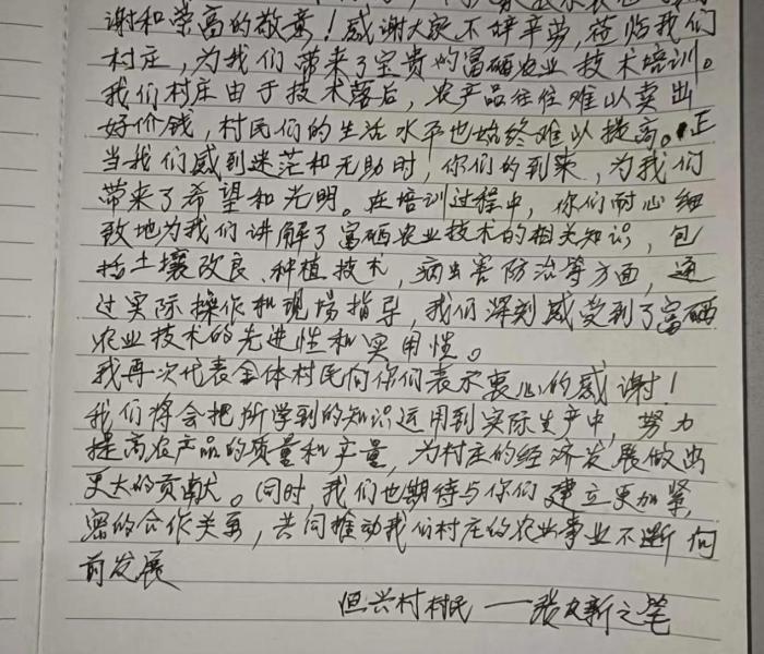 實(shí)踐尾聲,恒興村受益村民代表向團(tuán)隊(duì)遞交了一封情真意切的聯(lián)名感謝信。信中質(zhì)樸的文字,表達(dá)了對團(tuán)隊(duì)傳授技術(shù)、助力增收的由衷感激,成為檢驗(yàn)實(shí)踐成效最動人的注腳。