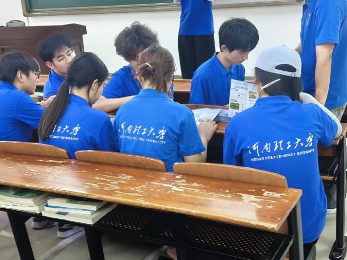 7月13日上午,在河南理工大學(xué)三號教學(xué)樓內(nèi),實(shí)踐團(tuán)成員圍坐一圈,桌上整齊擺放著近幾日從河南省焦作市韓平陵村、李屯村及孫村帶回的調(diào)研資料。大家分組對這些資料進(jìn)行逐一梳理,從海量數(shù)據(jù)中剖析鄉(xiāng)村農(nóng)業(yè)對科技服務(wù)的真實(shí)需求。經(jīng)過三個多小時的系統(tǒng)梳理與熱烈研討,幾組關(guān)鍵結(jié)論逐漸清晰:三個村中,超半數(shù)耕地通過合作社承包、大戶流轉(zhuǎn)等形式實(shí)現(xiàn)集約化經(jīng)營,規(guī)模化農(nóng)業(yè)形態(tài)正加速形成;盡管大部分農(nóng)戶表示知曉無人機(jī)噴藥技術(shù),但在未參與土地承包的個體農(nóng)戶中,超半數(shù)從未嘗試過該服務(wù),“知而不用”的矛盾尤為突出;在信息獲取渠道方面,多數(shù)村民更傾向于通過抖音、快手等短視頻平臺獲取信息,希望看到直觀的技術(shù)演示,同時呼吁政府出臺補(bǔ)貼政策,降低嘗試新技術(shù)的經(jīng)濟(jì)門檻。