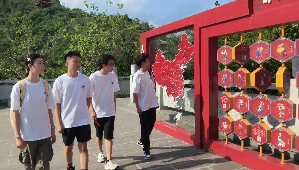 告別文化館后,實(shí)踐團(tuán)沿山路登上背峰山。山巔廣場(chǎng)的“云之門(mén)”旁,巍峨的民族團(tuán)結(jié)故事墻靜靜矗立,墻上“民族團(tuán)結(jié)之窗”區(qū)域陳列著五十六個(gè)民族的圖文展板,藏族經(jīng)幡、蒙古族馬頭琴、傣族孔雀舞等各民族文化歷史元素在展板上清晰呈現(xiàn)。程宏偉老師帶領(lǐng)實(shí)踐團(tuán)成員駐足觀看,同步講解民族文化知識(shí)及黨關(guān)于筑牢民族團(tuán)結(jié)的精神,引導(dǎo)大家深刻領(lǐng)會(huì)“中華民族一家親”的理念,為實(shí)踐團(tuán)隊(duì)開(kāi)展后續(xù)工作筑牢了思想根基。
