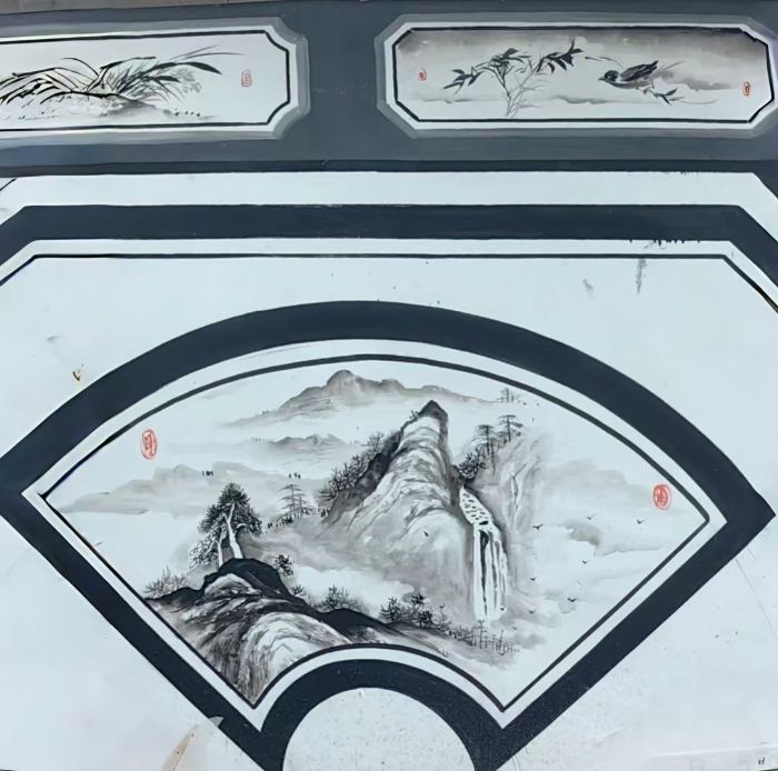 徐振國(guó)先生向團(tuán)隊(duì)詳細(xì)介紹了白族墻畫的藝術(shù)特點(diǎn)。他談到,墻畫色彩既包含典雅的黑白灰,也有絢麗的彩色;圖案多寓意吉祥,如梅蘭竹菊、山水鳥禽,不僅起到裝飾作用,更承載著祈福與標(biāo)識(shí)家族血脈的文化內(nèi)涵。繪制工藝雖有一定之規(guī),但需根據(jù)建筑場(chǎng)景靈活運(yùn)用。