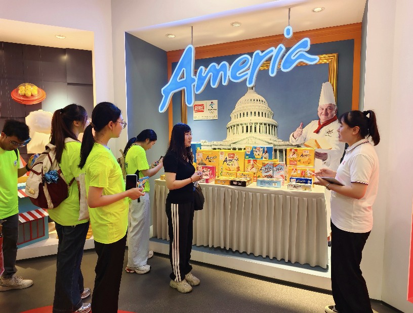 二、對(duì)話盼盼食品:糕點(diǎn)里的“小崗故事”走進(jìn)安徽省小崗盼盼食品有限公司,實(shí)踐團(tuán)被墻上醒目的標(biāo)語(yǔ)吸引:“我們的食品,我們的飲料,是做給我們的親人吃的,做給我們的親人喝的。”工作人員介紹,這則標(biāo)語(yǔ)正是小崗盼盼一以貫之的生產(chǎn)理念,公司以“敢為天下先”的小崗精神加“愛拼才會(huì)贏”的閩南精神,嚴(yán)格甄選全球原料,引進(jìn)各國(guó)先進(jìn)的現(xiàn)代化智能設(shè)備和技術(shù),高標(biāo)準(zhǔn)嚴(yán)管控,持續(xù)創(chuàng)新,打造高標(biāo)準(zhǔn)的全產(chǎn)業(yè)食品供應(yīng)鏈。小崗盼盼還曾于2022年冬奧期間為來自全球的運(yùn)動(dòng)健兒提供營(yíng)養(yǎng)健康的休閑食品,獲得好評(píng)。