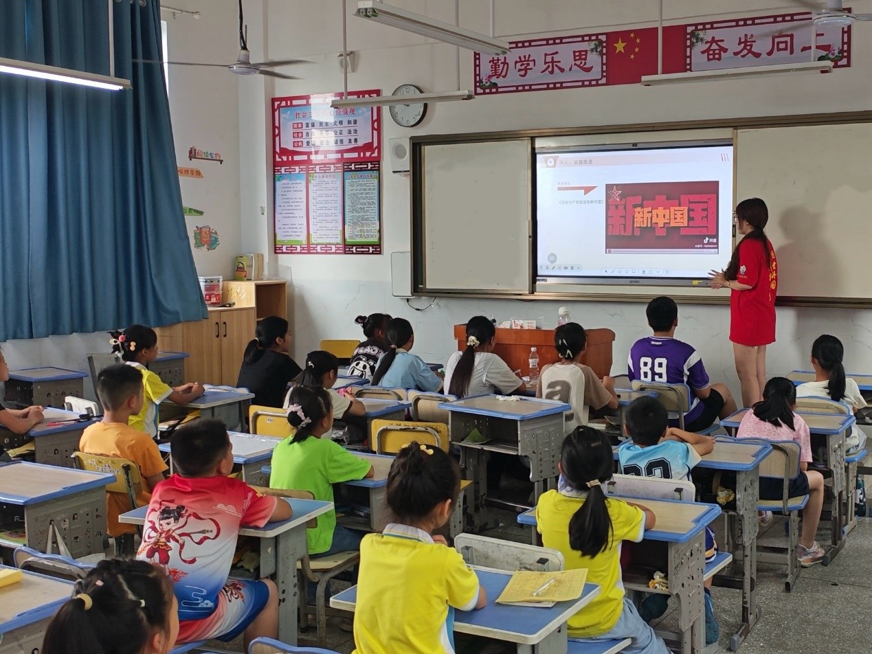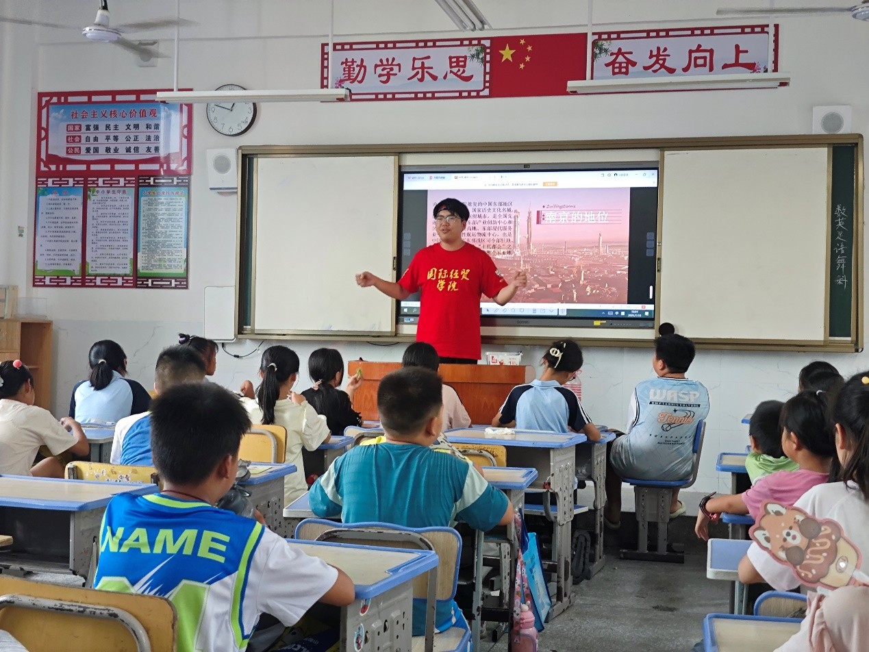 8月11日,廣西壯族自治區(qū)桂林市靈川縣海洋鄉(xiāng)中心小學(xué)的教室里,南京財經(jīng)大學(xué)國際經(jīng)貿(mào)學(xué)院“漓漓圓上草”支教團(tuán)隊以“紅色貿(mào)易史”與“黨史學(xué)習(xí)教育”為主題,為大山里的孩子上了一堂特別的紅色教育課程,架起了連接南京與桂林的紅色文化橋梁。這支連續(xù)七年深耕靈川的支教隊伍,用“圓”的團(tuán)結(jié)精神與“草”的堅韌品格,在桂北山區(qū)播撒下紅色的火種,更在孩子們心中種下了通往山外的精神之梯。