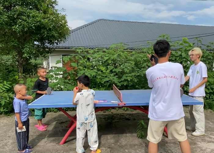 賽場之上,乒乓球往復(fù)穿梭,孩子們在跑動、揮拍中逐漸釋放活力,原本拘謹?shù)纳袂楸粚W⑴c歡笑取代。活動期間,服務(wù)隊為參與兒童分發(fā)零食禮包,包含牛奶、面包、水果等營養(yǎng)食品,在補充能量的同時傳遞關(guān)懷。