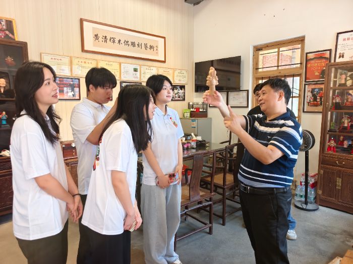 為深入探尋非物質(zhì)文化遺產(chǎn)的傳承與發(fā)展, 2025年7月13日“泉藝匠心偶戲生輝”實(shí)踐隊(duì)走進(jìn)黃清輝提線木偶工作室,與非遺傳承人黃清輝先生面對(duì)面交流,沉浸式感受提線木偶藝術(shù)的獨(dú)特魅力。
