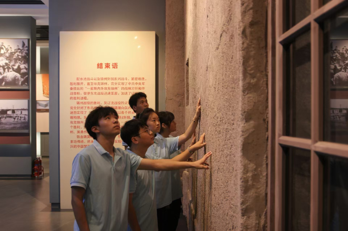 “匠心守護(hù)者”實(shí)踐團(tuán)首先參觀了配水池戰(zhàn)斗遺址陳列館,通過(guò)工作人員地講解,實(shí)踐團(tuán)成員了解到1948年遼沈戰(zhàn)役期間,解放軍戰(zhàn)士以“攻配水池就是攻錦州城”的決心,浴血奮戰(zhàn),最終攻克陣地,為東北野戰(zhàn)軍攻打錦州打開(kāi)了城北的門戶,為錦州解放奠定了重要基礎(chǔ)。實(shí)踐團(tuán)成員認(rèn)真聆聽(tīng)英雄事跡,駐足仔細(xì)閱讀墻上展示的歷史資料,實(shí)踐團(tuán)成員呂舒琴深受感觸:“今天的幸福生活是戰(zhàn)士們用生命換來(lái)的,新時(shí)代的我們應(yīng)該從紅色文化中吸收營(yíng)養(yǎng)、汲取力量,用所學(xué)的專業(yè)知識(shí)助力紅色文化傳承、發(fā)展。”