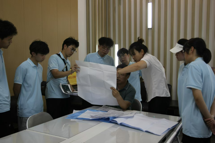 圖為實(shí)踐隊(duì)師生與工作人員共同探討圖紙。關(guān)旭攝
