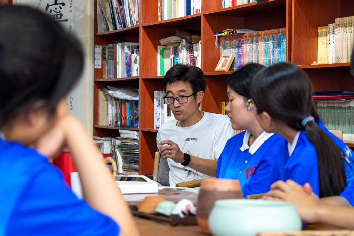 圖為實(shí)踐團(tuán)成員對話手工藝人范紹寧。