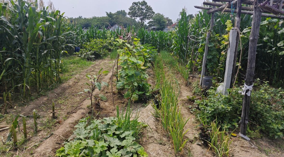 通過走訪,硅小蒜科技助農(nóng)團(tuán)發(fā)現(xiàn)睦和村大多實(shí)行多種作物混合種植模式,其中以大豆玉米帶狀復(fù)合種植模式最為典型,其目的是在玉米不減產(chǎn)的情況下又可以多收一季豆,相較于平常的種植模式,這種種植模式光能利用與養(yǎng)分循環(huán)都更加高效,并且種植方式使作物蟲害區(qū)隔,大豆的固氮作用還可提高土壤肥力,是更低碳高效、綠色生態(tài)、循環(huán)持續(xù)的發(fā)展模式。