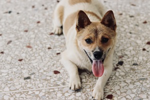 (圖為在光明村跟了團(tuán)隊(duì)成員一路的小柯基)