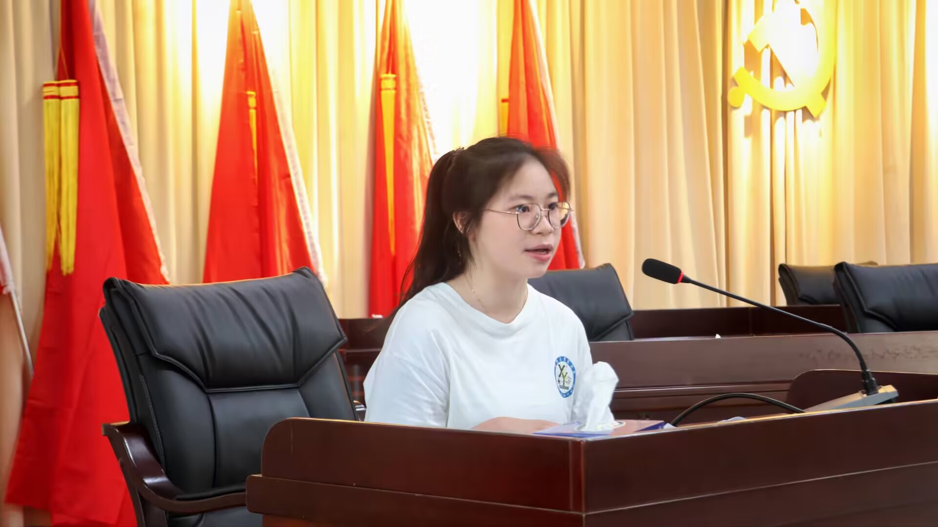 湖北第二師范學院星野志愿服務隊志愿者代表發(fā)言,她表示出對此次三下鄉(xiāng)社會實踐活動的憧憬和期待,同時,她希望每一名志愿者都能擔起責任,努力做好分內的事。