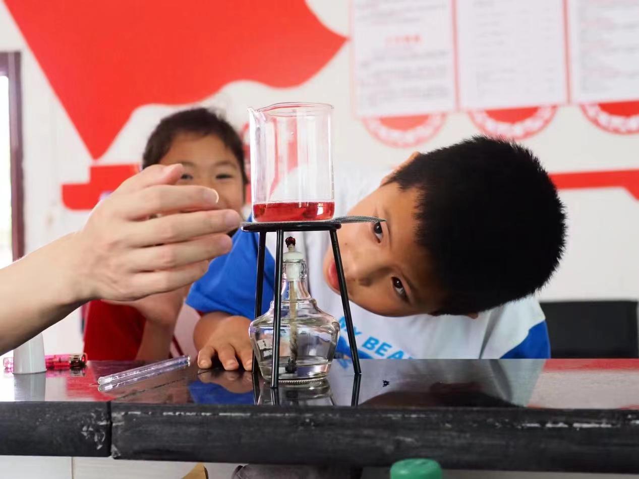 志愿服務(wù)隊(duì)成員帶領(lǐng)孩子們開展化學(xué)實(shí)驗(yàn)