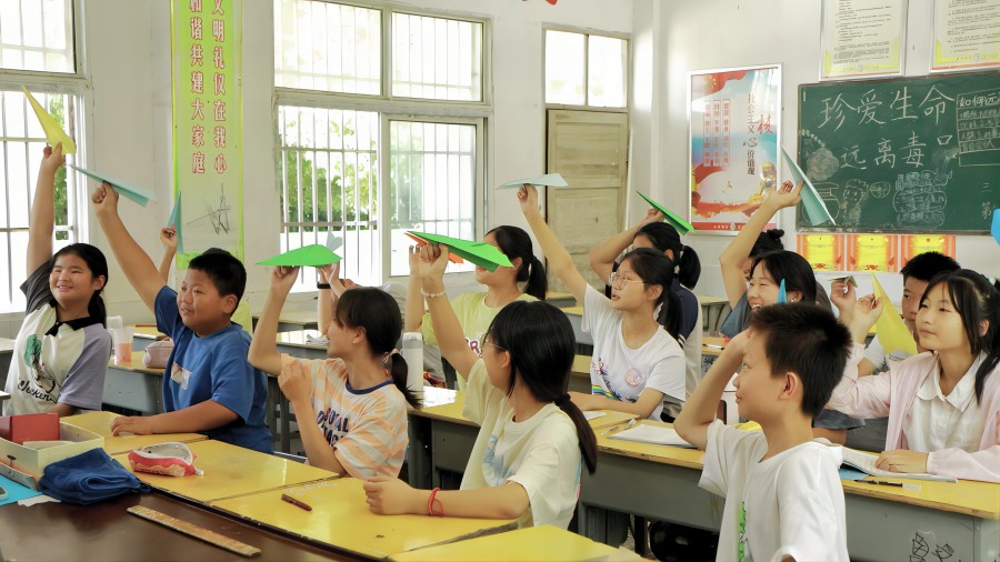 夢想課堂的最后,志愿者們讓同學們在彩紙上寫下自己的夢想,再將彩紙疊成一架小小的飛機,握在手中,舉過頭頂,朝前擲出。隨著紙飛機破開空氣滑行,屬于他們的精彩人生也翻開了第一章。快門定格下這美好的一刻,畫面中同學們發(fā)自內心的笑容燦爛如七月驕陽。