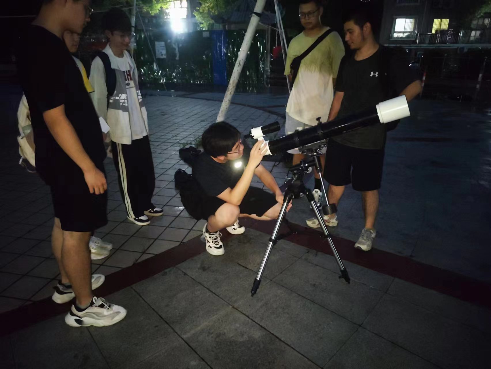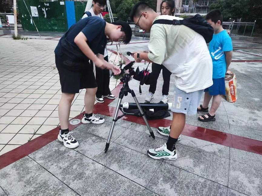 夜晚,天文路演活動正式開始。實踐團成員耐心地向圍觀群眾介紹望遠鏡的構造和工作原理,現場展示了操作天文望遠鏡觀測星空的方法。許多居民透過天文望遠鏡的鏡筒體驗到了前所未有的視覺震撼。