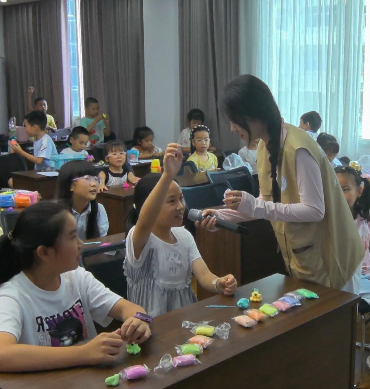 在粘土手工課上,實(shí)踐隊(duì)成員們?yōu)楹⒆觽儙砹素S富多彩的粘土材料和工具,鼓勵(lì)孩子們發(fā)揮想象力,創(chuàng)作出自己心中的藝術(shù)品。他們耐心地指導(dǎo)孩子們?nèi)绾沃谱髡惩磷髌罚瑥暮?jiǎn)單的形狀到復(fù)雜的圖案,從單一的色彩到豐富的搭配,每一步都充滿了樂趣和挑戰(zhàn)。