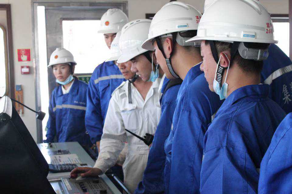 實踐隊隊員登上“凱富”輪,通過船長、輪機長等資深船員的現(xiàn)場教學,近距離了解機艙、駕駛臺、原油裝卸操作臺等區(qū)域的操作和工作原理;參觀船員房間、餐廳等生活區(qū),體驗船員工作環(huán)境。