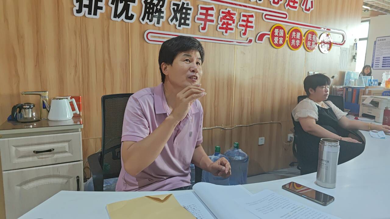 圖為常勝社區(qū)黨群工作人員回答硅小蒜科技助農(nóng)團(tuán)的走訪