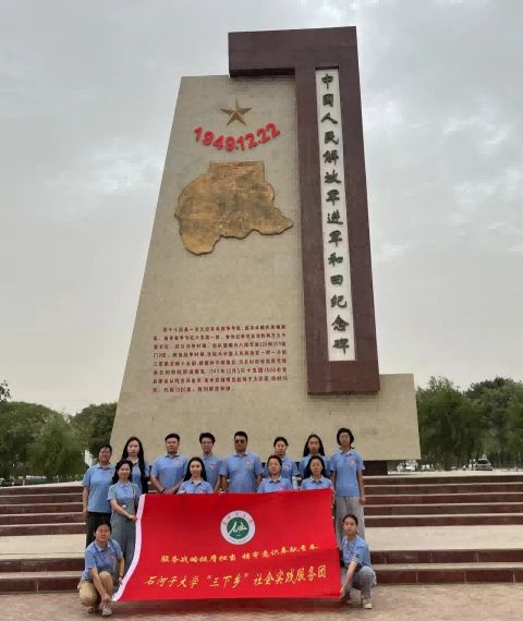 圖為和田解放紀念碑下的團隊合影 宋梓辰供圖