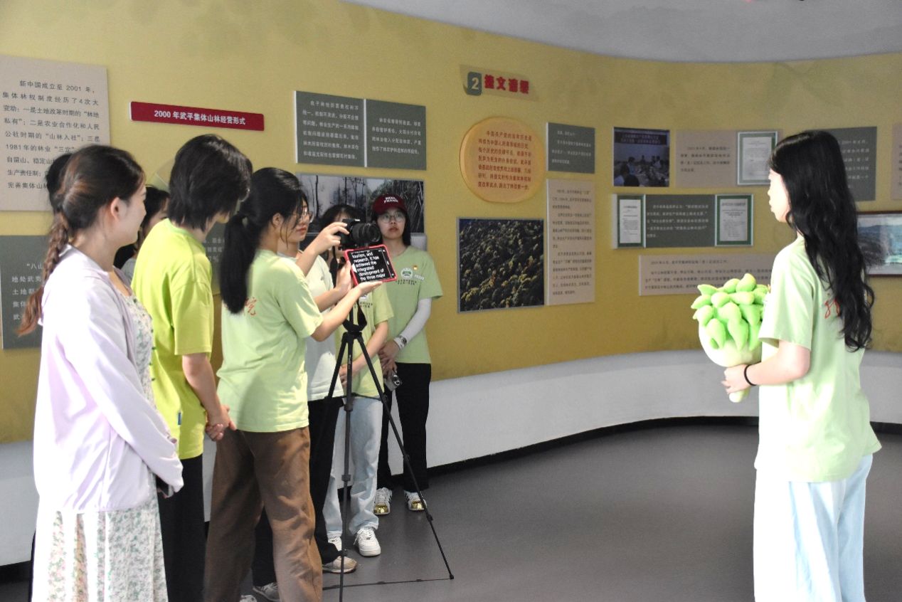 外語青年共攜手,助力捷文譜新篇除實地參觀、干部專訪、志愿服務(wù)的活動形式外,實踐隊隊員們在捷文村進(jìn)行社會實踐時還充分利用英語的專業(yè)優(yōu)勢,精心制作了一系列英文講解宣傳視頻。實踐隊隊員們深入研究了林改的背景、過程和影響并運(yùn)用專業(yè)知識和技術(shù)將這些資料轉(zhuǎn)化成生動有趣的視頻內(nèi)容。視頻中,學(xué)生們用自然流暢的口語進(jìn)行英文解說,不僅介紹了林改過程中的重大決策,而且分享了林改過程中所遇到的有趣故事。實踐隊員采用視頻、照片、訪談記錄等形式記錄捷文故事,以青年學(xué)生黨員之力量宣傳“敢為人先、接力奮斗”林改首創(chuàng)精神,以專業(yè)所長賦能老區(qū)鄉(xiāng)村振興發(fā)展,體現(xiàn)應(yīng)用型本科院校的育人實效。