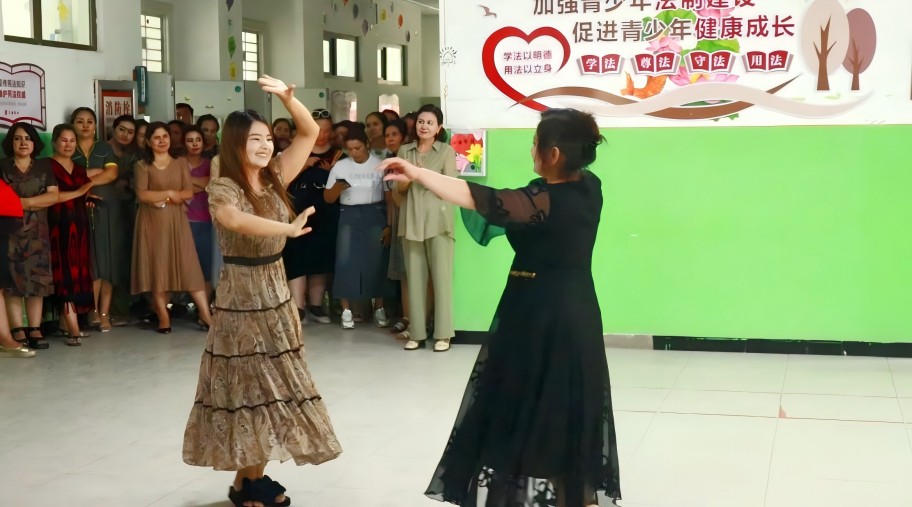 課間休息,各民族師生共同跳起歡快的民族舞。實踐團以豐富多彩的活動深化了與當?shù)亟處煂W(xué)員的友誼,更用實際行動詮釋了“民族團結(jié)一家親”精神,促進各民族之間的交往、交流、交融,在實踐中鑄牢中華民族共同體意識。此次培訓(xùn)活動得到參訓(xùn)教師們的熱烈響應(yīng)和高度評價。在文字交流碰撞之余,激發(fā)教師學(xué)員的學(xué)習(xí)動力與激情,讓普通話之花在喀什大地遍地開放,讓青科大的“推普”之名,響徹天山南北。