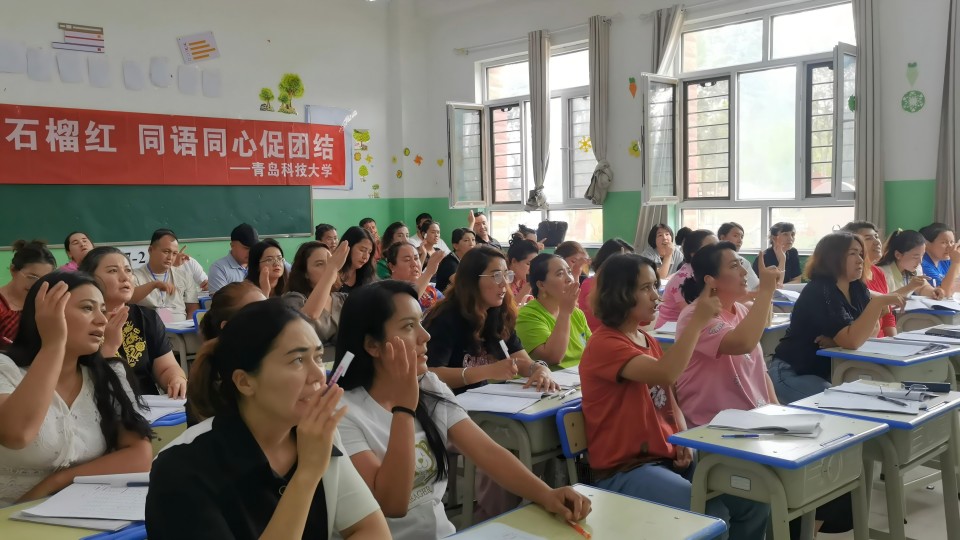 為進一步提升少數(shù)民族地區(qū)教師國家通用語言文字水平,增強中華文化認同,鑄牢中華民族共同體意識,促進各民族之間的交往、交流和交融,7月中旬青島科技大學(xué)“花開青科石榴紅”推普支教實踐團來到喀什疏勒縣開展為期十天的推廣普及國家通用語言文字支教培訓(xùn)工作。