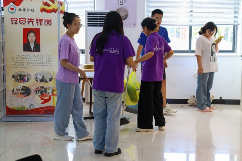 下午三點,在隊長李明宇的組織下,實踐團開展了對圖書閱覽室和教室的衛(wèi)生打掃工作,所有實踐團成員參加。在打掃衛(wèi)生的過程中,成員們首先對閱覽室的桌子和椅子進行重新編排,為小朋友們留出充足的活動空間和上課空間,以便于更好的開展教學(xué)實踐工作。