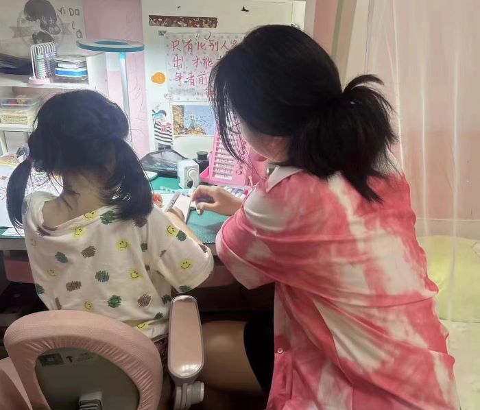 下午,陽光熾熱。侯同學(xué)在家中耐心為妹妹輔導(dǎo)功課,桌上堆滿書本筆記。她說高考后的暑假要幫妹妹進(jìn)步,這是她為家做的貢獻(xiàn)。輔導(dǎo)過程有困難,可看到妹妹成績提升,一切都值。她期待大學(xué)充實(shí)自己,更好照顧家人。