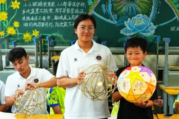 7月16日,在蚌埠市龍亢農(nóng)場中心小學(xué),安徽師范大學(xué)體育學(xué)院“陽光體育”支教團隊精心籌備,首次將非遺滾燈表演帶入校園。