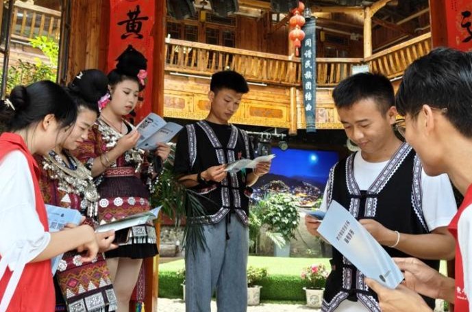 7月15日至17日,淮北師范大學“志愿青春助振興,西江苗寨繪新篇”社會實踐團隊赴貴州省黔東南苗族侗族自治州雷山縣西江千戶苗寨開展“攜手西江派出所,共筑反詐防火墻”實踐活動。(通訊員:王月)