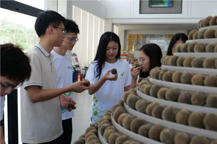 穿越千年探尋化橘紅  為進(jìn)一步了解化橘紅,積極做好中醫(yī)藥文化“守正創(chuàng)新,傳承發(fā)展”的實(shí)踐者、傳播者,廣東科技學(xué)院“夏橘鄉(xiāng)”數(shù)字賦能橘紅產(chǎn)業(yè)突擊隊(duì)全體隊(duì)員還參觀了深融化州橘紅科普館。廣東深融生態(tài)產(chǎn)業(yè)有限公司工作人員重點(diǎn)圍繞化橘紅的歷史根源、栽培及加工技術(shù)要點(diǎn)、國家地理標(biāo)志產(chǎn)品保護(hù)情況及文化產(chǎn)業(yè)發(fā)展前景等為隊(duì)員們進(jìn)行了全面系統(tǒng)的講解。
