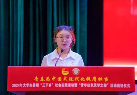 出征儀式上,學生楊燦告訴大家“紙上得來終覺淺,絕知此事要躬行。”走出校園、深入社會,作為新時代的筑夢者,民族復(fù)興路上的生力軍,我們定當珍惜此次深入了解國情、社情及民情的寶貴機會,嚴格遵守紀律,服從安排,認真完成每一項任務(wù)。以高度的責任感和使命感,投入到社會實踐的每一個環(huán)節(jié)中,用心去感受、去學習、去成長,用實際行動為此次“三下鄉(xiāng)”社會實踐活動畫下濃墨重彩的一筆。