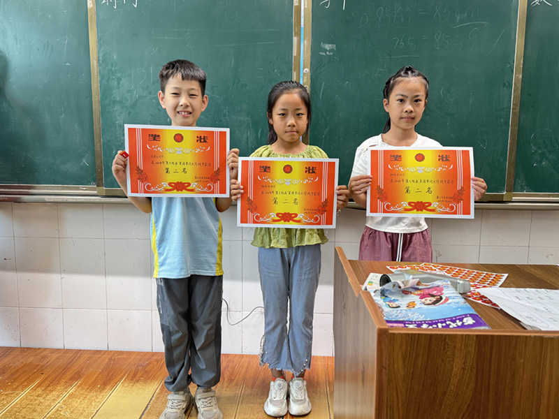 經(jīng)過(guò)實(shí)踐團(tuán)成員認(rèn)真的批閱,結(jié)果現(xiàn)場(chǎng)揭曉,并將準(zhǔn)備的獎(jiǎng)品頒發(fā)給孩子們。在最后的活動(dòng)總結(jié)時(shí),三年級(jí)負(fù)責(zé)人動(dòng)情地說(shuō):“樹(shù)根深埋地樸實(shí)無(wú)聲人謂之枝葉繁茂艷麗、風(fēng)過(guò)聲悅,古人謂之中華文化精深若此。“本”字形。根于木觀本固根深可謂扎實(shí);觀字形在木、頭重腳輕誠(chéng)為虛浮。樹(shù)如此亦然人生之路才能行穩(wěn)唯有夯實(shí)根本腳踏實(shí)于堅(jiān)實(shí)的樹(shù)干上生出繁茂枝葉。希望同學(xué)們?cè)谖磥?lái)的學(xué)習(xí)中,夯實(shí)基礎(chǔ),努力成長(zhǎng),活出想要的人生!”最終,活動(dòng)取得圓滿成功。