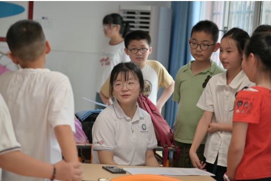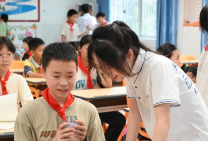 快樂的時光總是短暫的,下課的鈴聲結(jié)束了一天的課程。課堂上同學們和志愿者老師積極互動,學習知識,豐富自己的假期生活,課堂下,志愿者們則成為了同學們的的大哥哥大姐姐,相互交流不僅可以鞏固課堂上講解的知識,還可以幫助志愿者們了解孩子們的心理健康狀態(tài),更好的開展以后的支教工作。