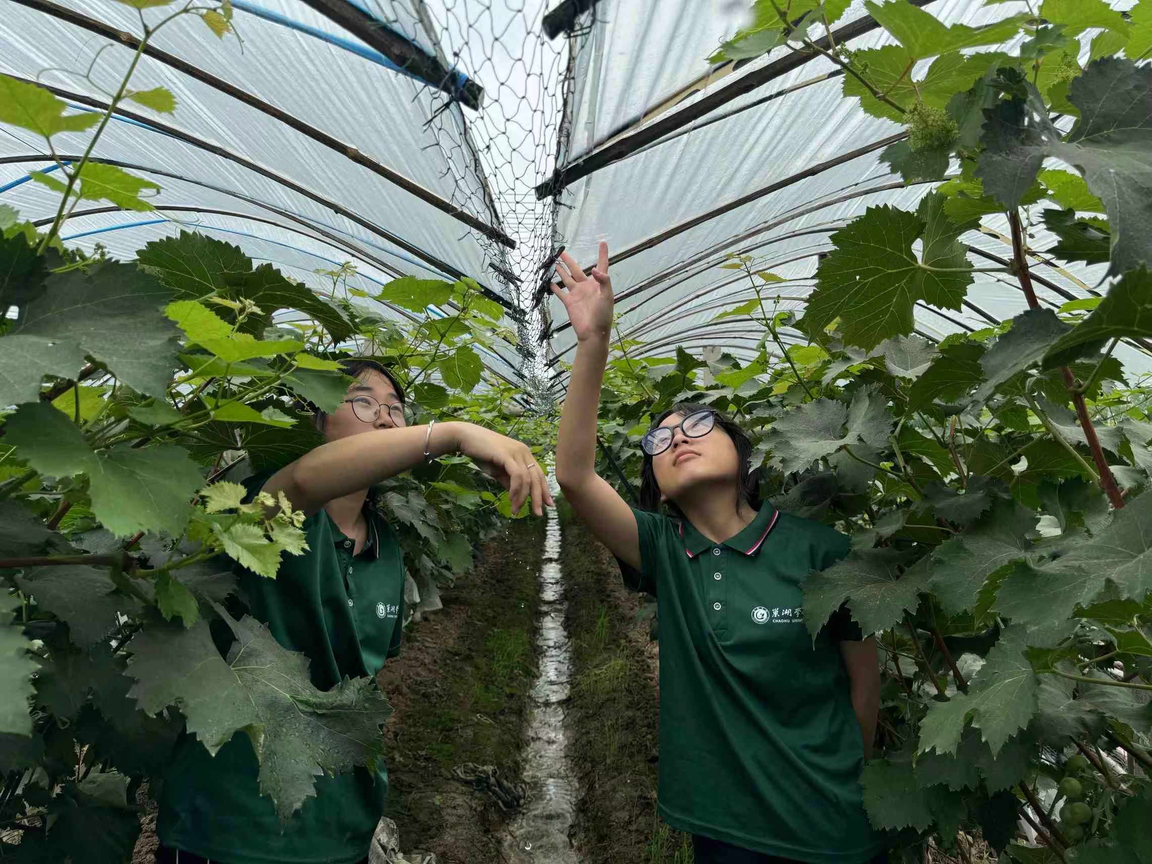 圖為團(tuán)隊(duì)成員觀察大棚下的葡萄 呂娜供圖